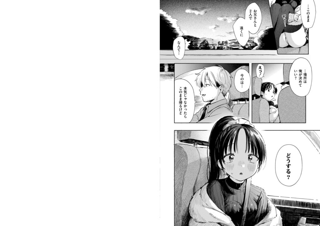 二人は車を走らせ、気の向くままにまぐわいながら、始まった関係の行き着く先へ。