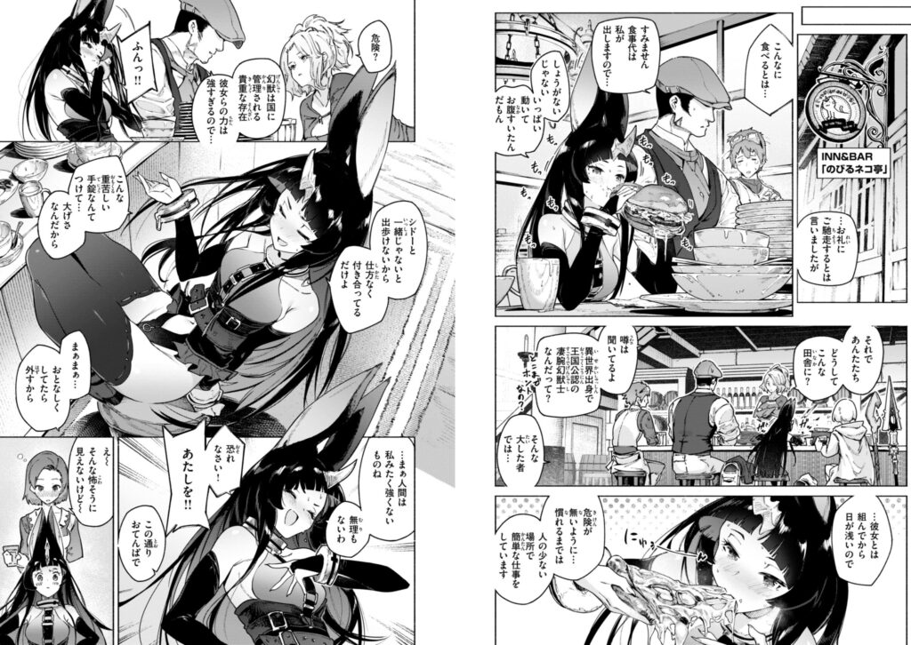 勢いのある作画で様々な種族(エルフ・獣人・魔族など)と主人公が絡む濃厚プレイが満載。