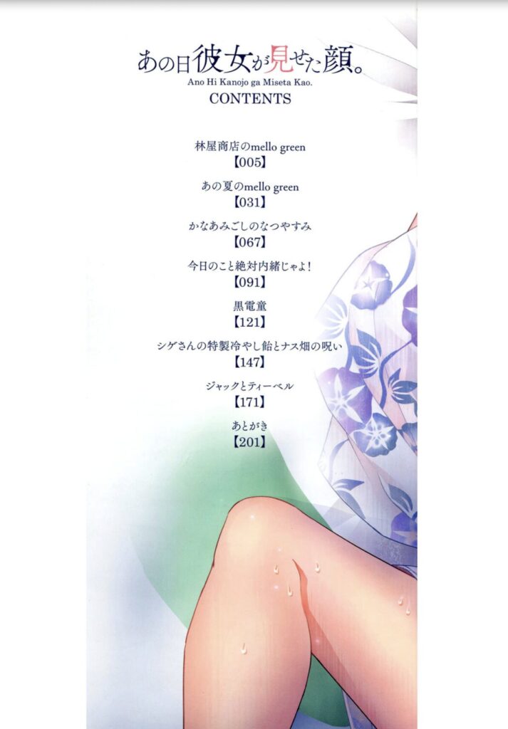 林屋商店のmello green / あの夏のmello green / かなあみごしのなつやすみ / 今日のこと絶対内緒じゃよ! / 黒電童 / シゲさんの特製冷やし飴とナス畑の呪い / ジャックとティーベル